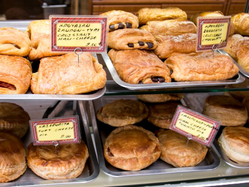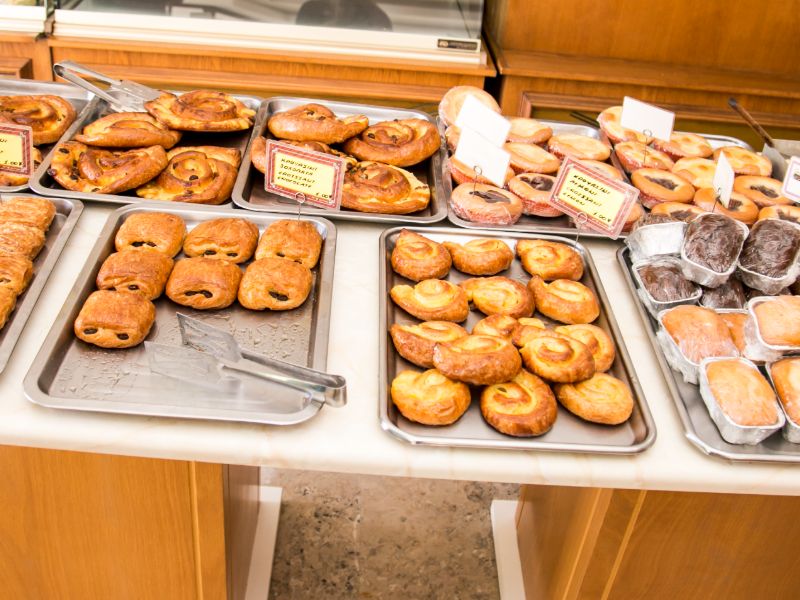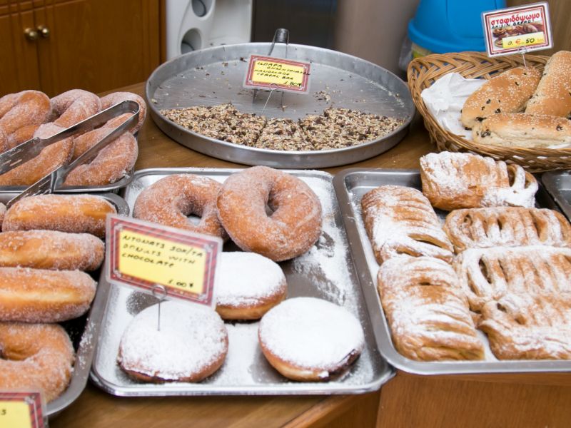 At our premises we bake daily delicious bread products such as loafs of bread, cookies, salty pies, croissants, donuts, sandwiches and a variety of similar other products. You are able to enjoy them by accompany them with a great hot or cold coffee. Moreover, we make daily fresh mouthwatering pastries and sweets in many different flavors in order you have something new to try every day.